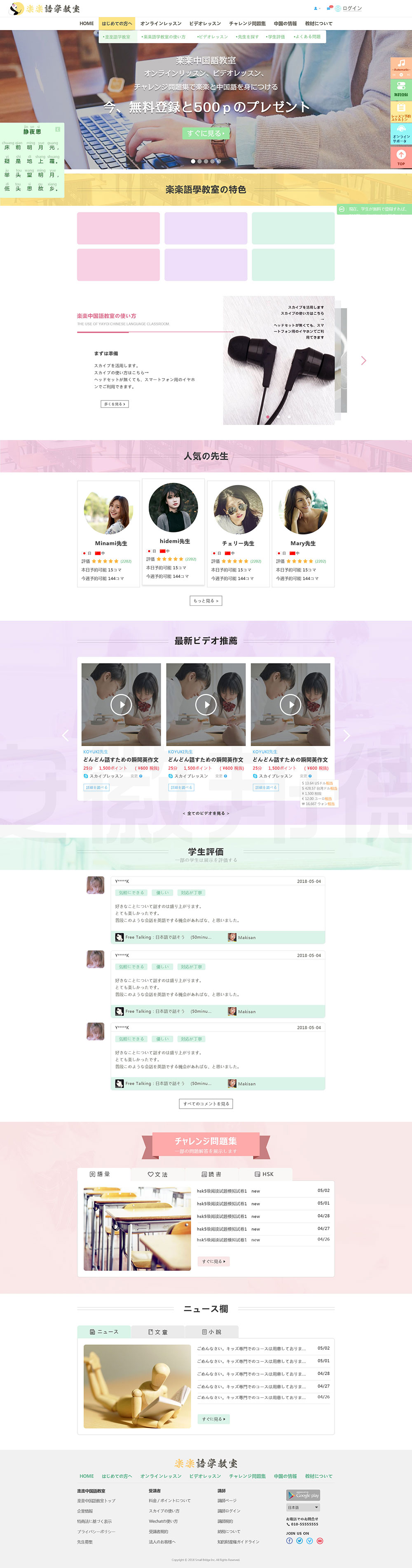 ネットチャイナは日本で最初に設立したオンラインで中国語レッスンを提供する会社の一つです。仕事の忙しいサラリーマン・経営者・中国駐在員・主婦や学生など様々の生徒様に、時間と場所の制限無く、自由にレッスンを受講でき環境を提供して来ました。 2012年設立以来、計200,000コマ以上のレッスンを提供して来まして、98.2%の生徒様から満足の声を頂きました。邦德开发为客户提供网站效果图设计,